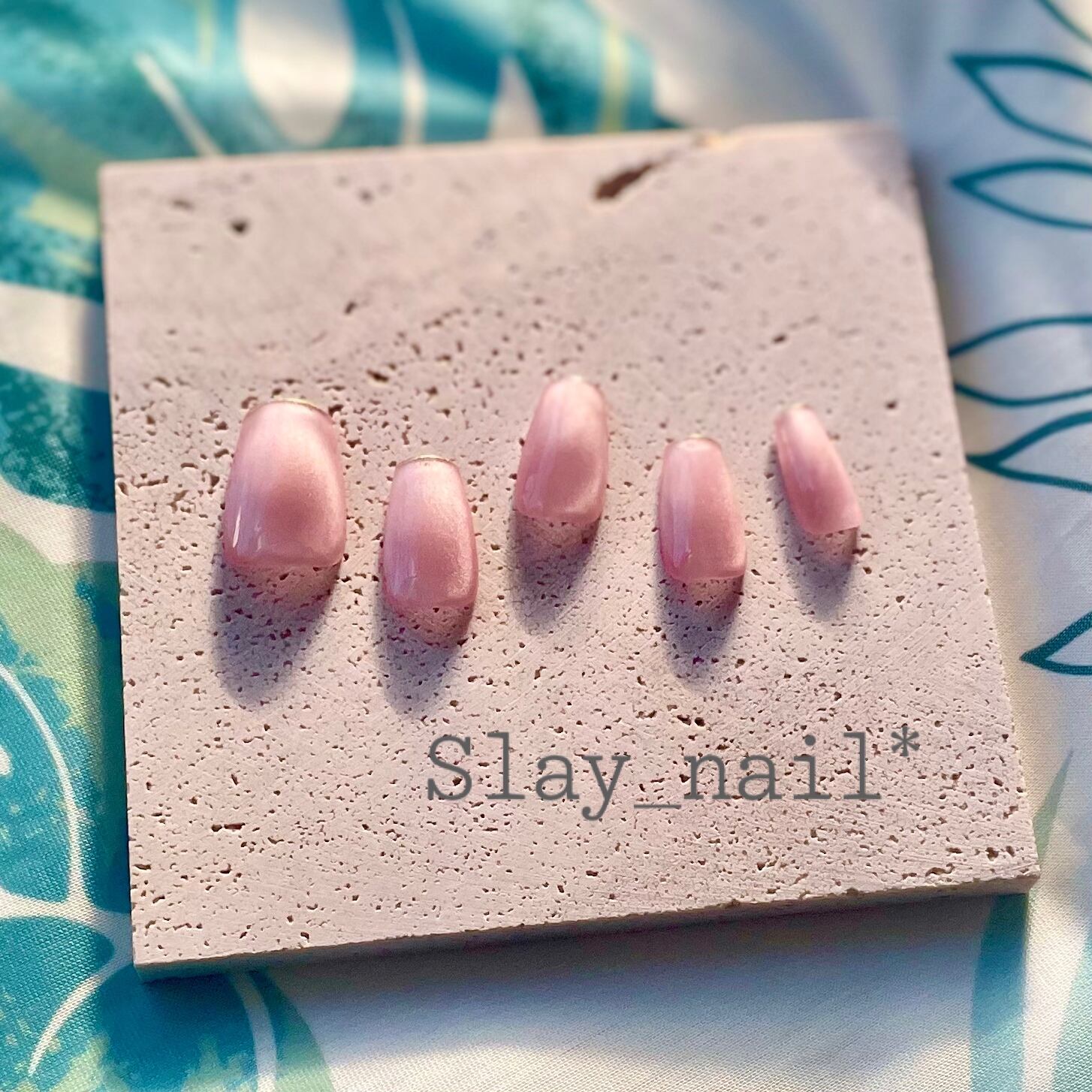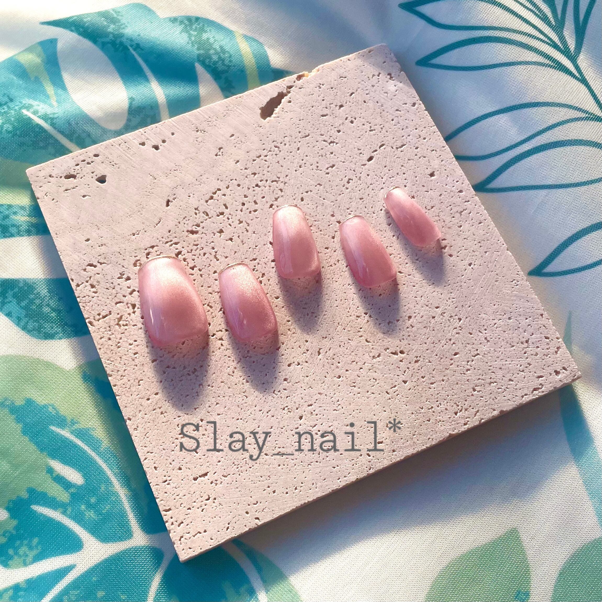 どんなシーンにも使いやすい、薄ピンクのマグネットワンカラーに先端はゴールドの細ラインです。