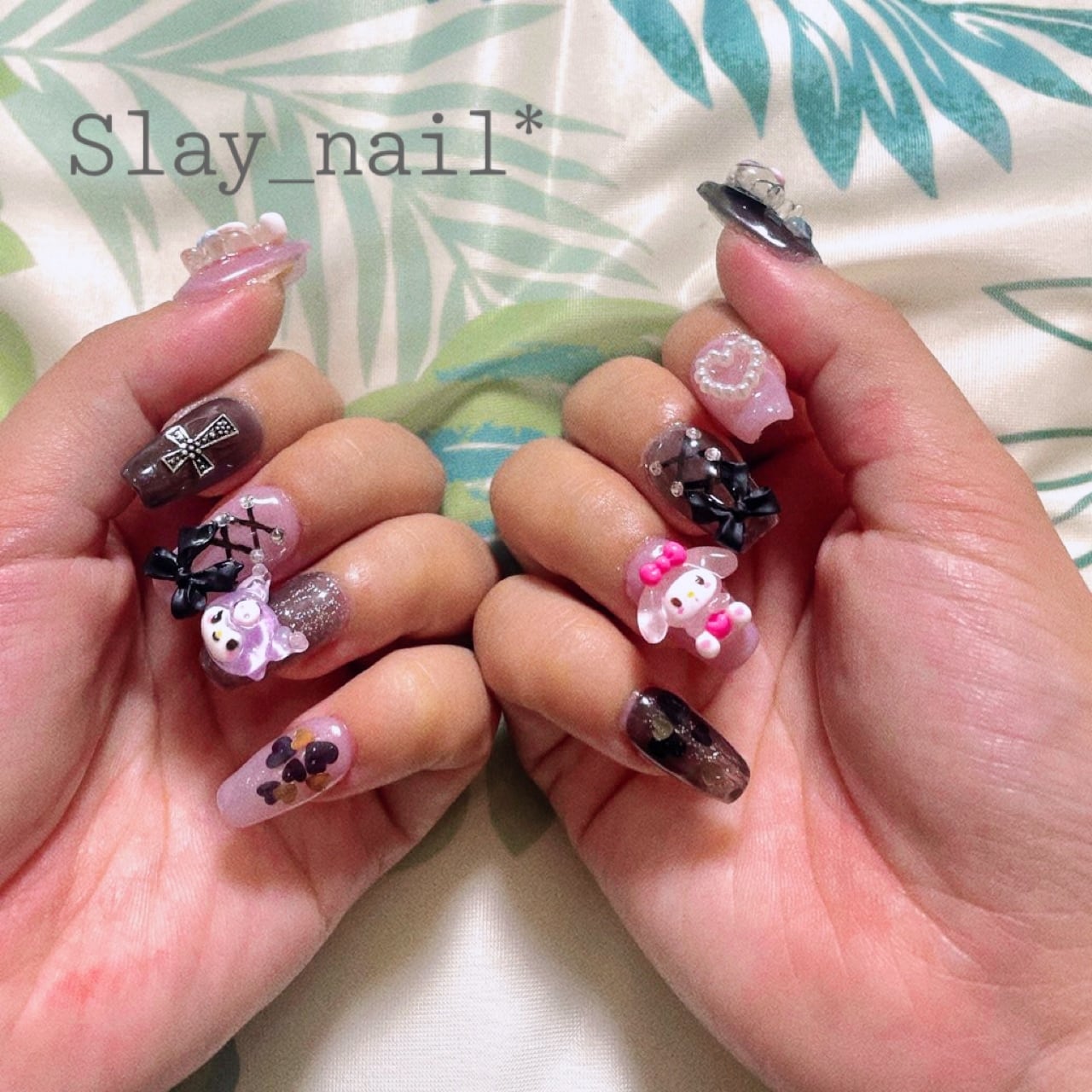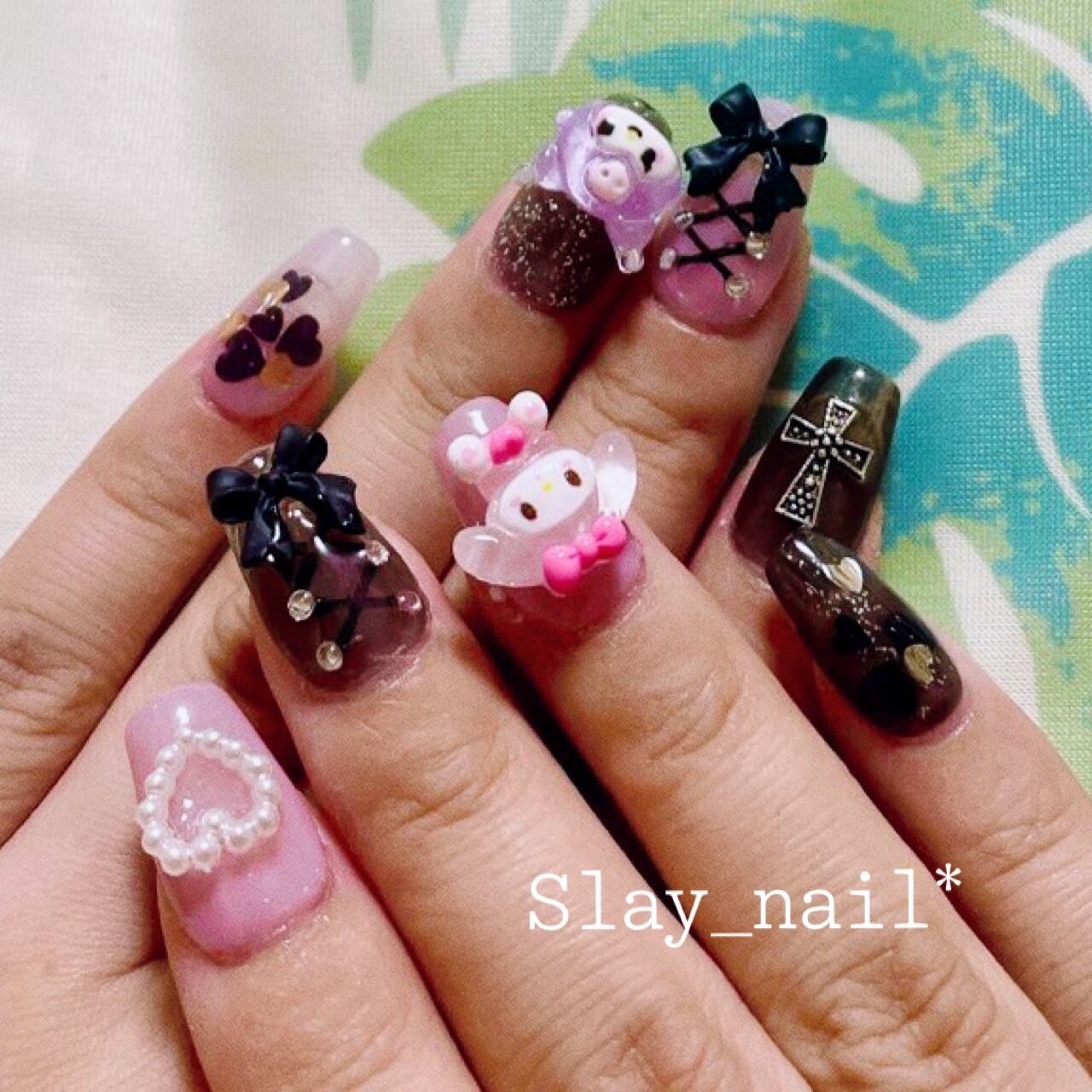 マイメロ×クロミちゃんのパーツを組み合わせた地雷ネイルのチップです。