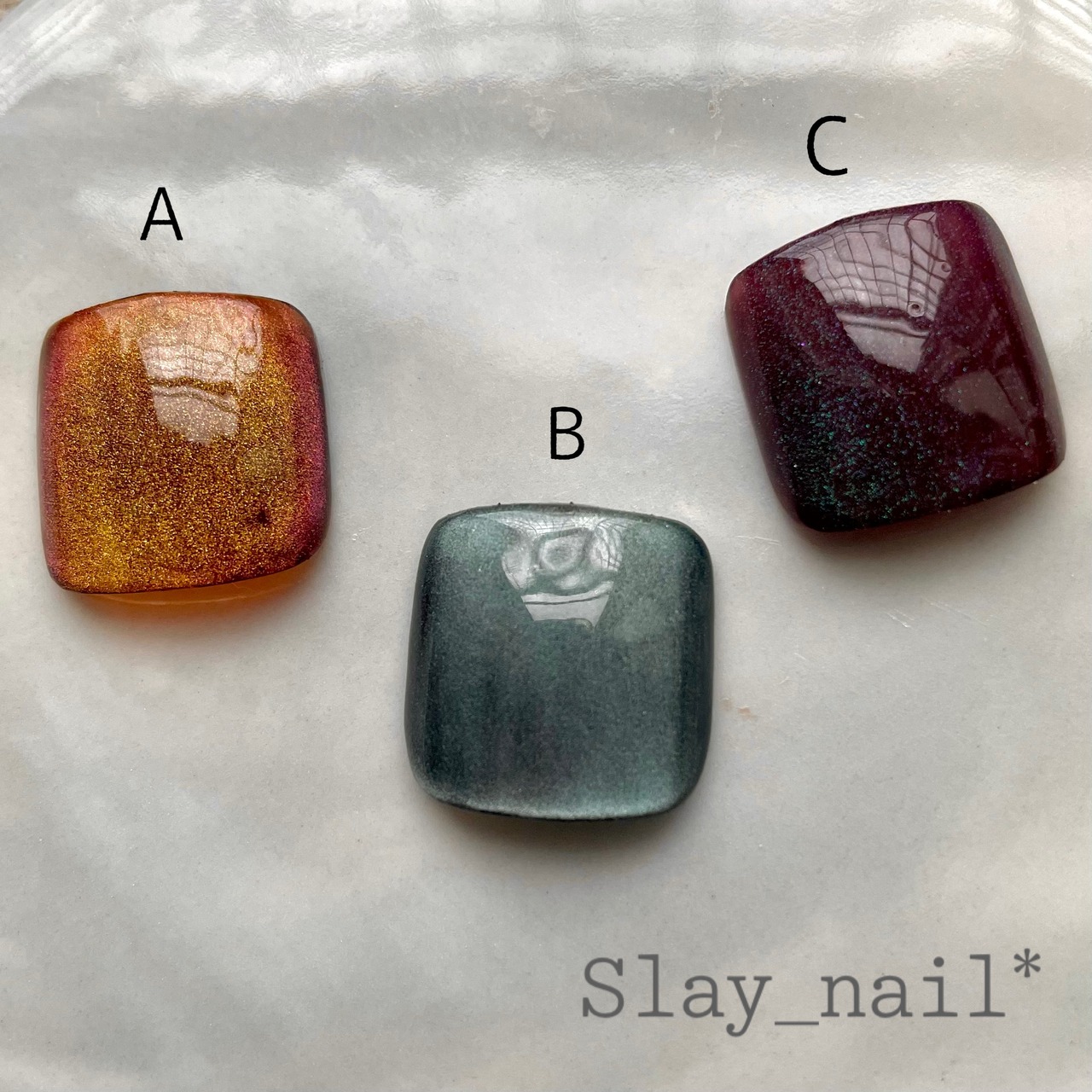 少し秋っぽくクールな印象のバイカラーマグネイルです。