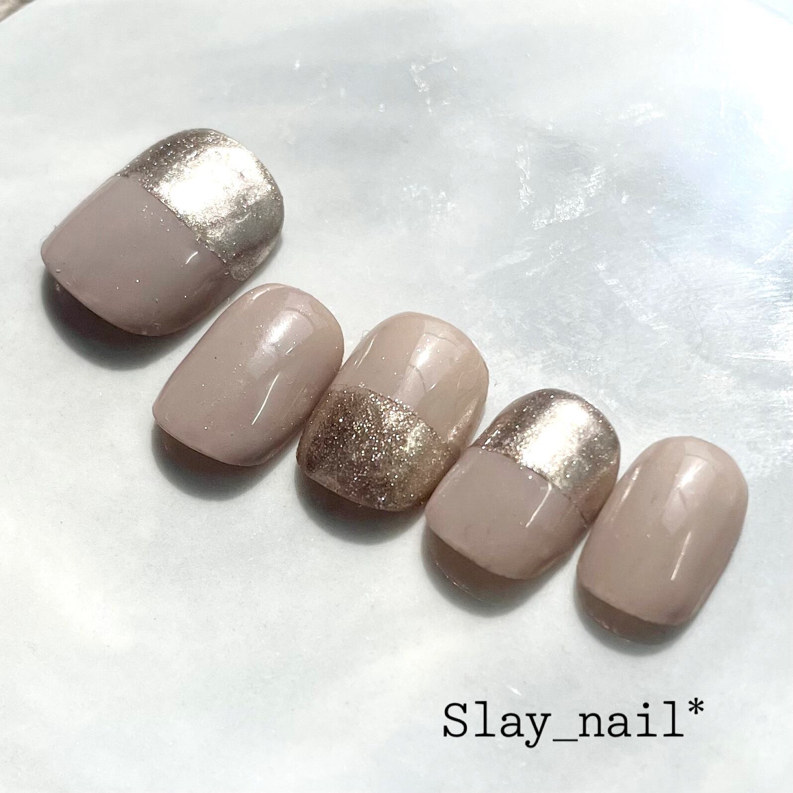 シンプルネイル グレージュカラー ミラーパウダー