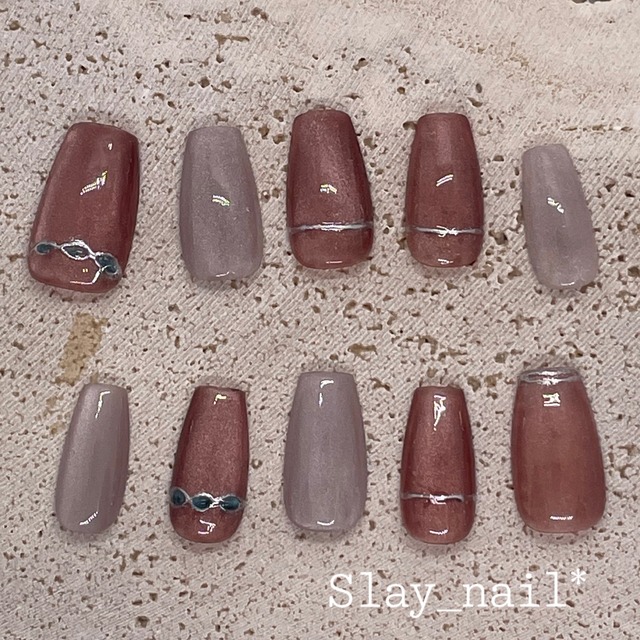 ご覧いただきありがとうございます。 レッドブラウンのマグネットネイルをベースにして、ポイントでツイードのアクセントを入れてみました。 こっくりとした色味が今の季節にぴったりではないでしょうか。 ☑︎チップ種類は8種類からお選びください。 ☑︎チップサイズは画像に記載されております。 ご自身でお選びいただき備考欄に記入お願い致します。 例)右04548 左14569 ☑︎入金確認後、作成いたしますので 大体目安10〜14日程お時間いただきます。 ☑︎機種画面により色の見え方が異なる場合があります。 ご了承くださいませ。 ☑︎ニュアンスネイルはひとつひとつ手作りですので、全く同じにはならないことをご了承くださいませ。 ☑︎当店では犬を飼っております。細心の注意を払いますが、神経質な方はご遠慮ください。 その他ご不明点などございましたら お気軽にお声掛けください(՞ . .՞♡)